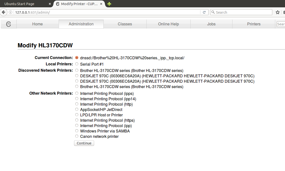 lpadmin -p HL3170CDW -E -v dnssd://Brother%20HL-3170CDW%20series._ipp._tcp.local/ -P /usr/share/cups/model/Brother/brother_hl3170cdw_printer_en.ppd